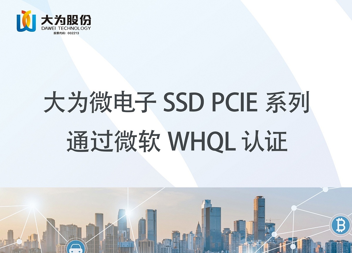 williamhill官网微电子存储产品DAWEI MICRO SSD PCIE系列经过微软中国技术中心的各项严格测试,在2022年7月7日正式通过了微软WHQL认证。
